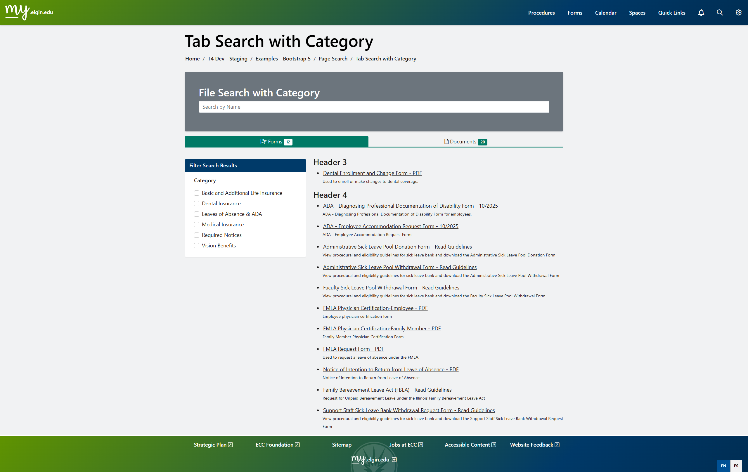 - Added faceted navigation with category filters (Directory, Documents, Forms, Procedures)