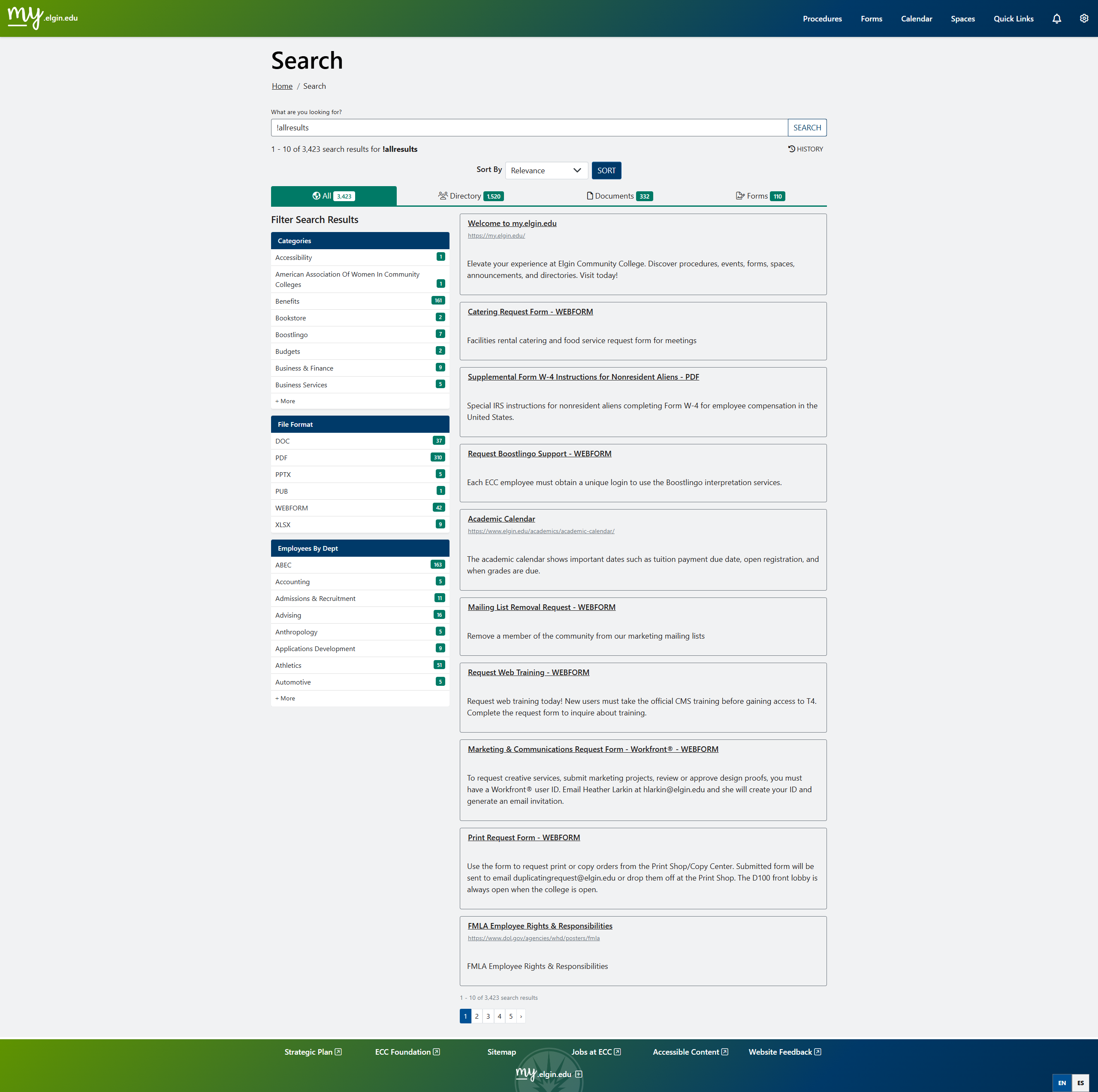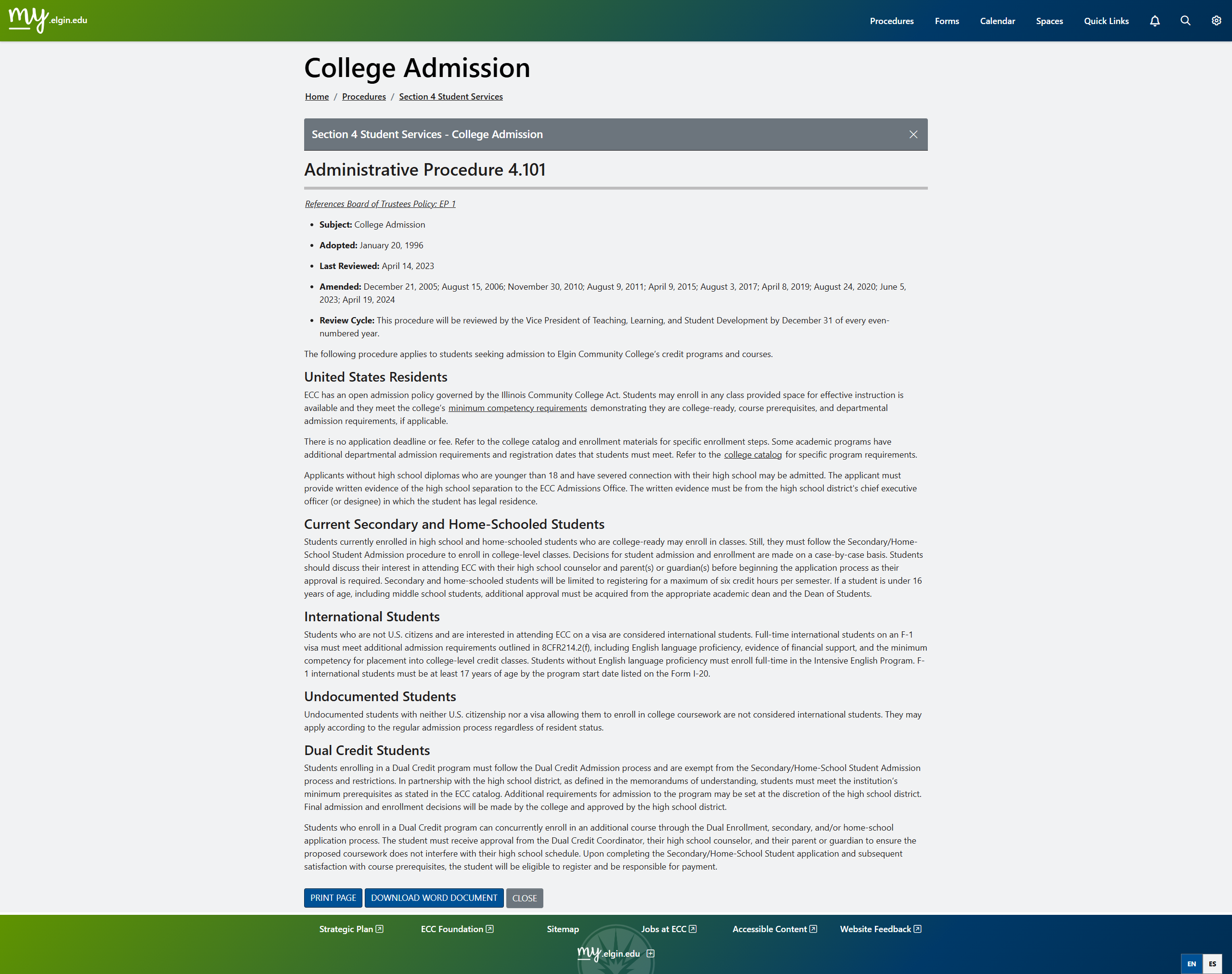 View Procedures on Elgin.edu